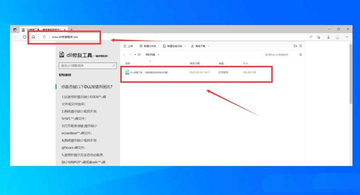 使用DLL修复工具进行一键修复。您可以在浏览器顶部网页搜索:dll修复程序.site【按回车键进入站点】,下载一个dll修复程序工具,这个程序是可以修复百分之百dll丢失的问题。