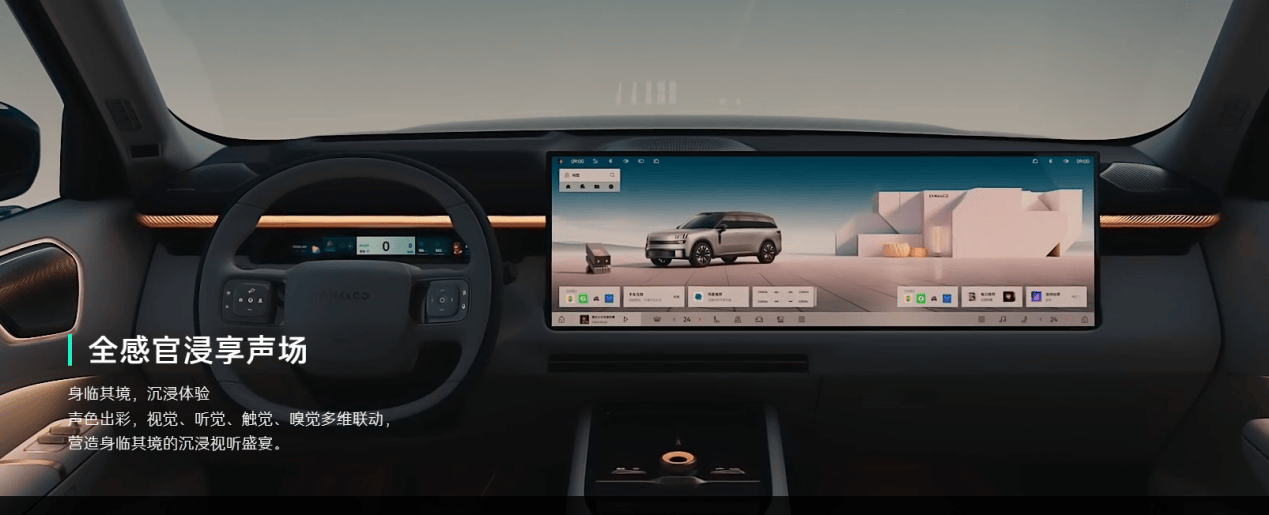 内饰设计上,采用了时下主流的简洁风格,小仪表屏幕+大尺寸中控屏设计,领克900采用了一块30英寸的巨大中控屏,直接从中间贯穿至副驾,而且采用了6k的高清分辨率。