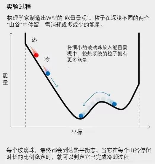 研究人员将玻璃珠放置在势阱的任何地方,来模拟初始较热的系统。因为热系统蕴含更多能量,粒子能更活跃地在能量景貌中四处游走探索。而模拟较冷的系统时,就需要把玻璃珠的初始位置限制在靠近深谷的区域。