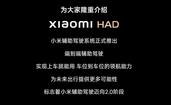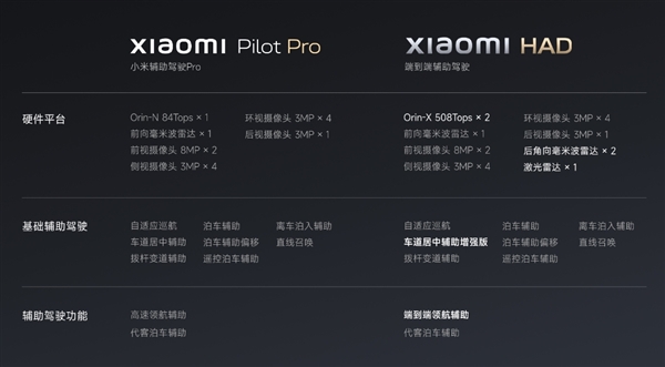 而小米SU7 Pro、小米SU7 Max搭载的Xiaomi HAD(带激光雷达),改名为“小米端到端辅助驾驶,此前为“小米智驾Max”。
