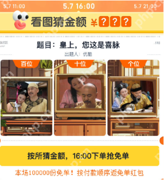→ 猜对答案并在前N名提交订单,即可获得等额红包立即到账!