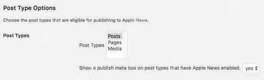 之后,您需要选择要以 Apple News 格式生成的帖子类型。在大多数情况下,您需要选择的唯一帖子类型是帖子。
