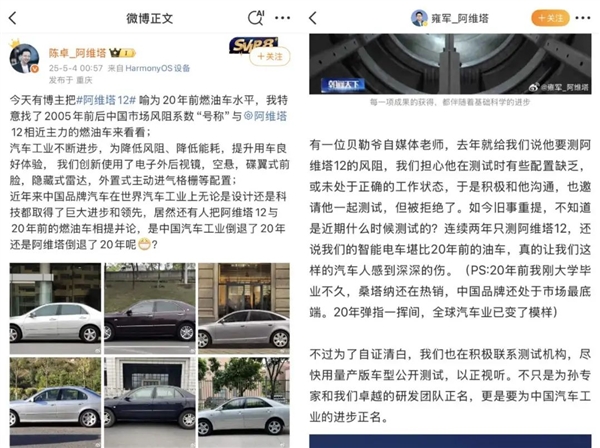 阿维塔高管也加入进来,阿维塔总裁陈卓、阿维塔科技副总裁雍军相继发文回应。