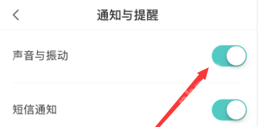 在通知与提醒设置中,可以看到“声音与振动”选项的按钮是开启状态,关闭即可,如图所示。