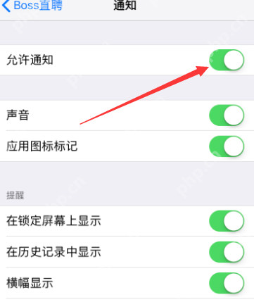 最后,关闭“允许通知”按钮,您就不会再接收到boss直聘的消息通知了,如图所示。