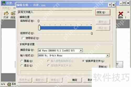 5、 点击录制按钮,可以通过麦克风录制声音或其他音频内容。