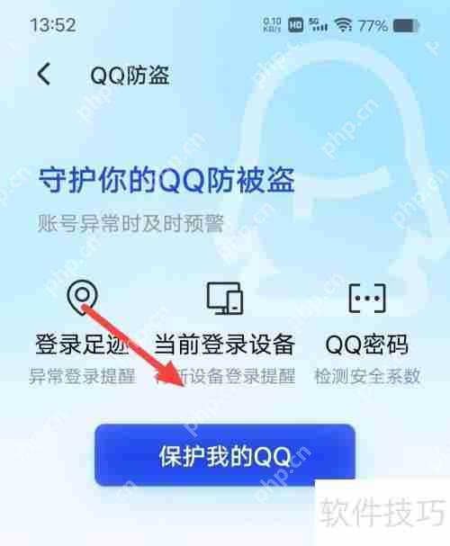 3、 最后,点击页面底部的“保护我的QQ”按钮,完成设置。