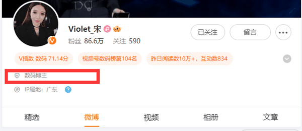目前,宋紫薇个人微博“Violet_宋”原置顶的iQOO 11S手机宣传内容已被下掉,同时,微博认证也改为“数码博主”。
