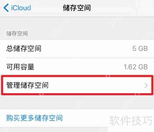 4、 点击管理存储空间选项,查看和调整你的存储设置。