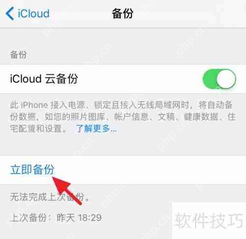 6、 设置完成后,前往iCloud设置,点击备份选项进行操作。