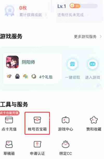 在“我的”页面中,您会看到“账号百宝箱”的功能,点击它进入相应的页面。