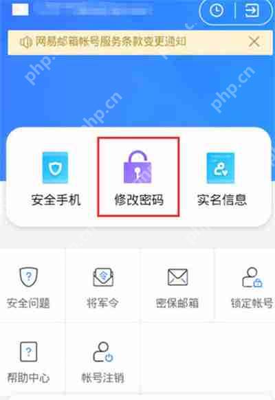 在“安全中心”页面,您会看到“修改密码”的功能,点击此选项即可进行密码更改。