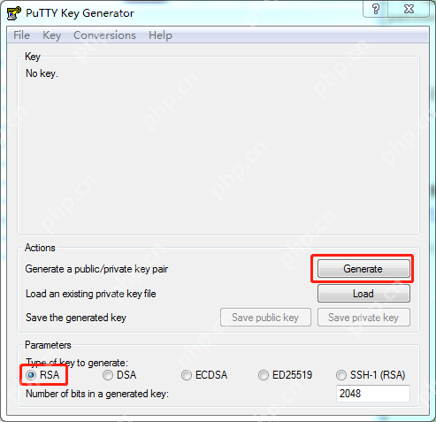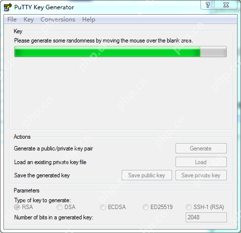 选择RSA,然后点击Generate。接着移动鼠标,通过鼠标位置生成随机数来生成Key。