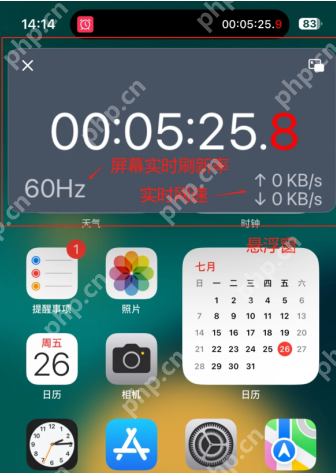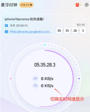 打开悬浮窗口,不仅有更大的实时倒数计时,还有实时的屏幕刷新率和网速显示。