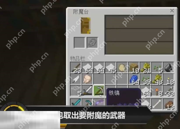 一、准备工作:打开背包,取出需要附魔的武器,并确保将其拿在手中。