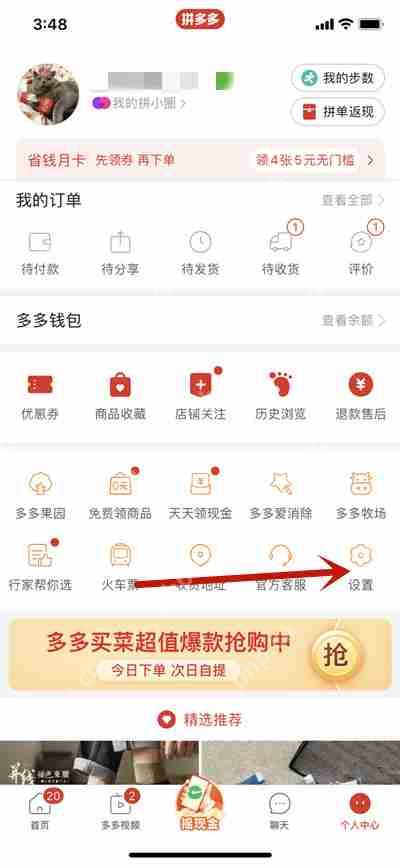 选择“设置” 进入个人中心后,点击“设置”选项。