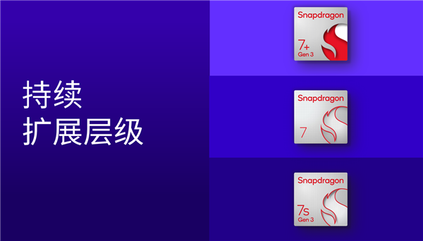 往下则是骁龙7s,也来到了第三代,经过精心设计,提供必要的高端特性。