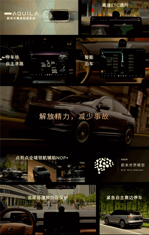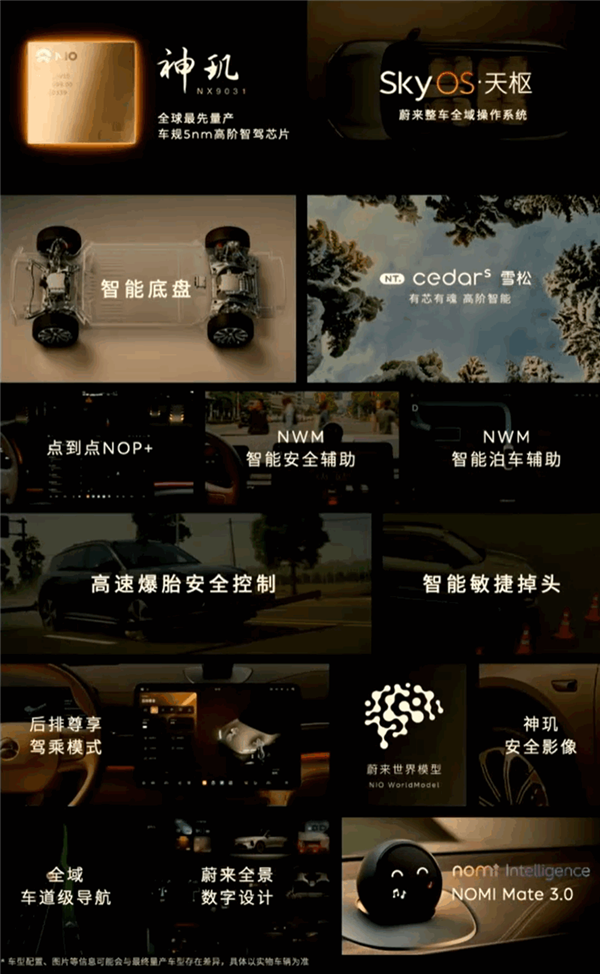 同时配合蔚来神玑NX9031芯片,7颗800万像素摄像头、4颗300万像素摄像头和1颗4D成像雷达等共29个感知硬件,能够实现城区、高速领航辅助和全场景辅助泊车功能。