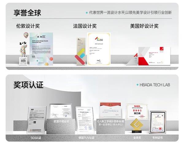 凭借行业领先技术,黑白调还获得了众多国际奖项认证:伦敦设计奖、法国设计奖金奖、美国好设计奖、MUSE设计奖等一系列大奖,以先进的人体工学技术和美学设计,享誉国际!引领行业创新发展标准。