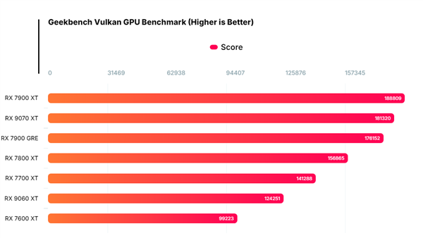 电脑知识网5月29日消息,AMD RX 9060 XT显卡首次出现在了Geekbench的跑分数据库中,但这款基于RDNA 4架构的显卡却未能超过RX 7700 XT。