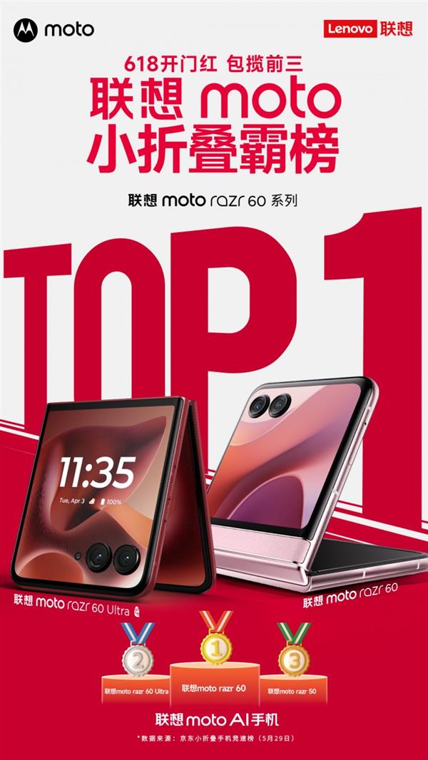 此外,618京东手机竞速榜第二的联想moto razr 60 Ultra AI元启版同样超值,该机作为首发搭载高通骁龙8至尊版移动平台的小折叠手机,为L3系统级AI带来全方位的充足算力支持。同时,该机还搭载了小折叠最强的5000W像素三摄影像系统,5000W像素超广角微距镜头,配合包括AI合影、私人格调影像等在内的AI功能,让小折叠影像表现直接拉满。同时新机延续全功能大外屏设计,在保持超高得屏率的同时,进一步升级支持上千款APP全功能使用,无论是回复消息还是刷抖音、小红书,都能带来极佳使用体验。