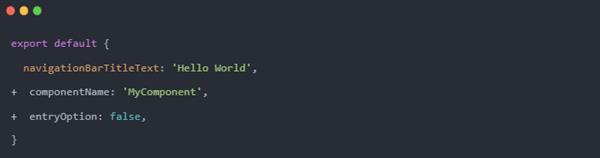 如果需要编译鸿蒙应用,同时使用编译鸿蒙组件,可以在页面配置中添加 entryOption: false 表示该页面是组件,同时可以用过 componentName 指定组件导出名。