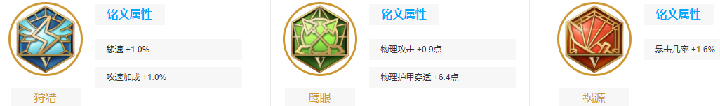 1、铭文顺序:蓝色狩猎、绿色鹰眼、红色祸源。