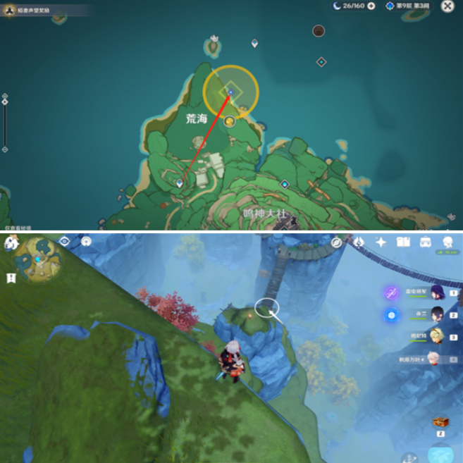 3、传送到荒海锚点,千万鸣神岛北段寻找阿顺,来到下面的位置与阿顺进行对话。