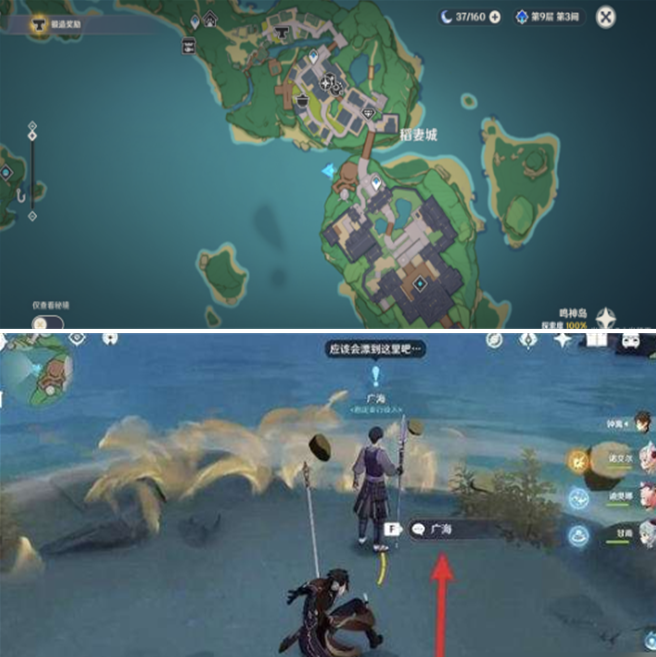 2、接着前往稻妻城,在左边的海岸寻找广海并与他进行对话。