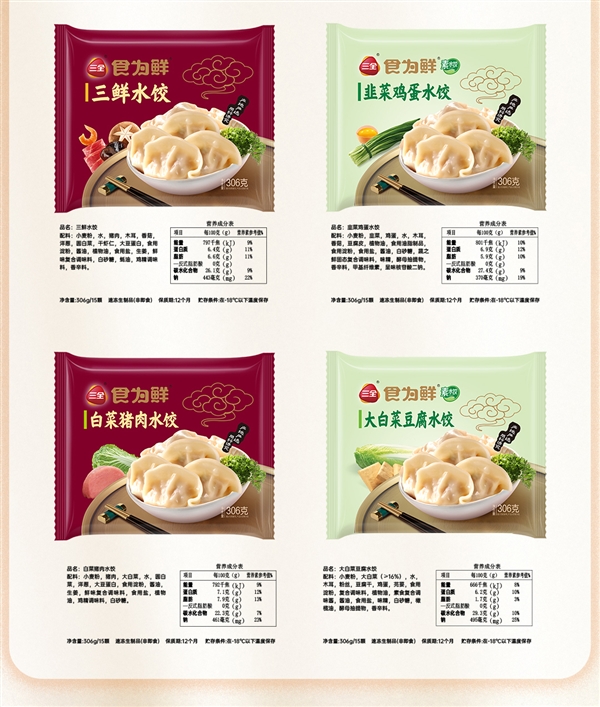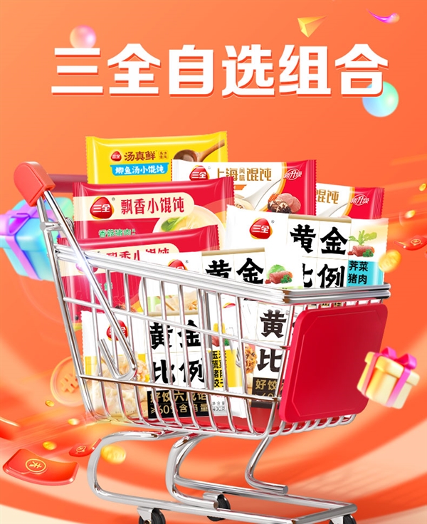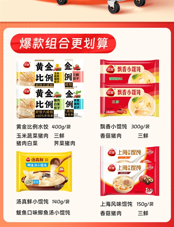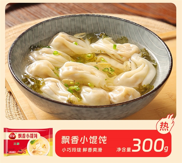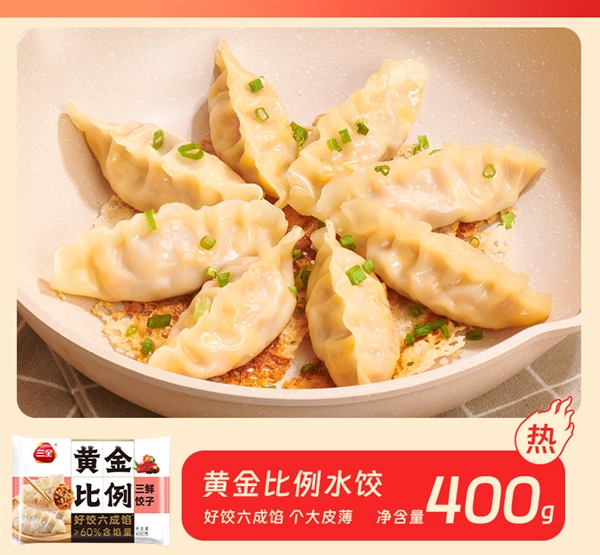 三全水饺 / 馄饨 / 煎饺等 150g~400g 日常售价 20.1 元,今日下单 10 件,立打 6.96 折。