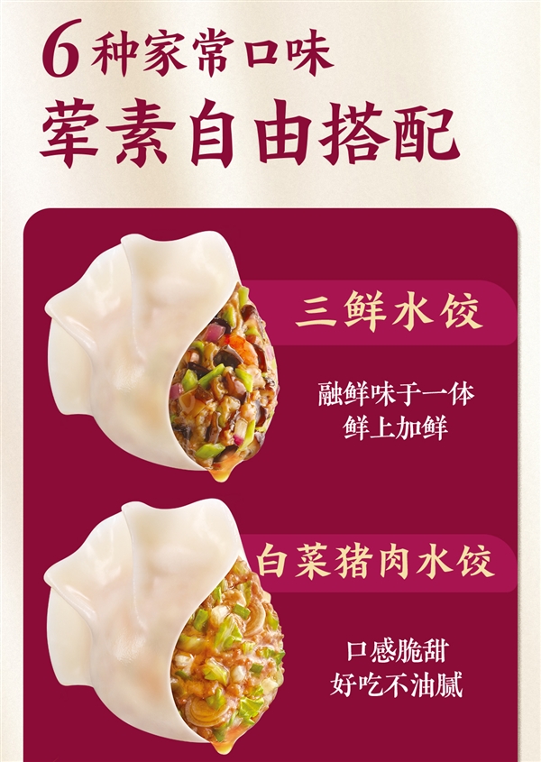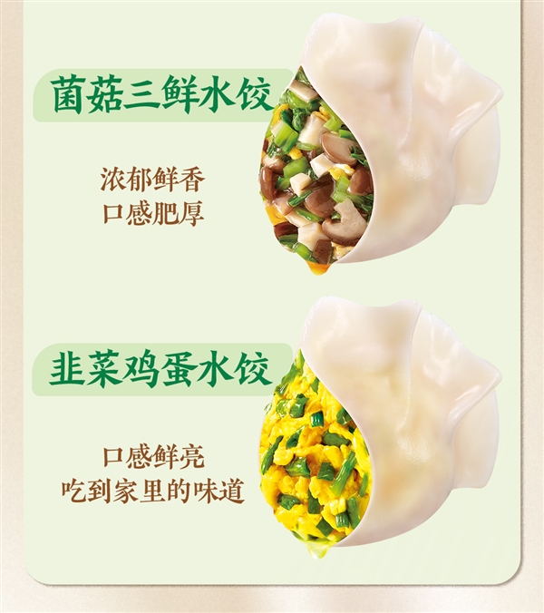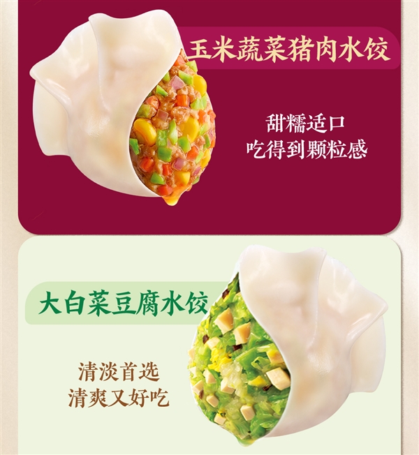 有水饺 / 馄饨 / 煎饺 / 狮子头 / 薄饼 / 奶黄包 / 豆沙包 / 春卷 / 小油条等 15 款可选。