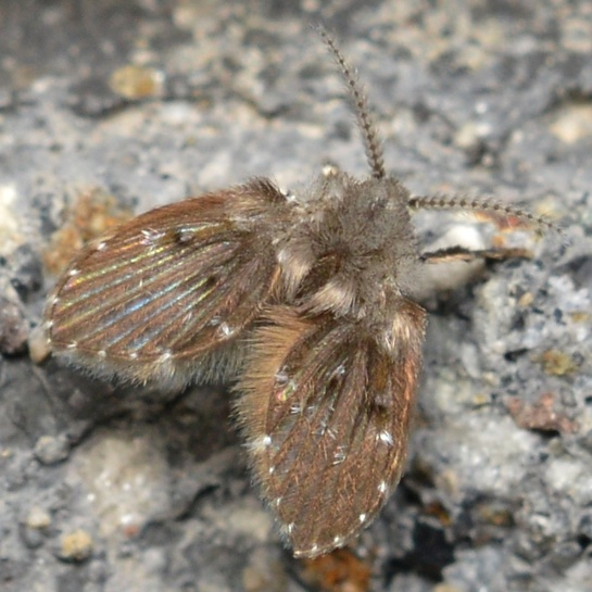 居家最常见的一种叫做白斑蛾蚋(Clogmia albipunctata),因其翅膀上的白色斑点及全身似飞蛾一般的绒毛而得名。