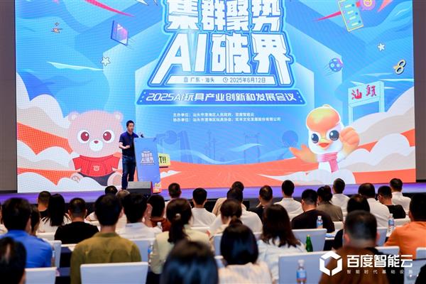 6月12日,由百度智能云、汕头市澄海区人民政府主办,澄海玩具协会与实丰文化发展股份有限公司(以下简称实丰文化)协办的2025 AI玩具产业创新和发展会议在“中国玩具礼品之都”澄海开幕。此次大会以「集群聚势·AI破界」为主题,汇聚全球AI技术厂商、知名IP方及产业链上下游伙伴,共探AI玩具的生态构建与创新发展路径,加速传统玩具制造向高端智造转型升级。