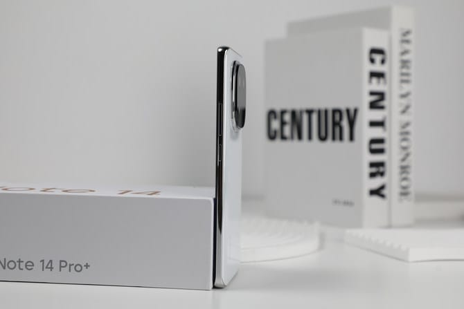 Redmi Note 14 Pro+使用了双曲面屏幕设计,并且边框做了收窄处理,从侧面看,视觉上更为纤薄,整个手机握持手感更好,配合上出色的材质表现,让整个手机像一块玉石一样温润。
