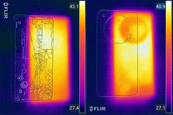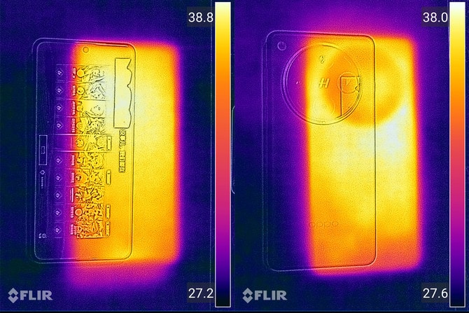 ↑ Find X8 Pro《王者荣耀》机身正、反面温度