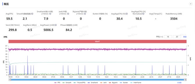 ↑ Find X8 Pro《王者荣耀》帧数图(测试软件:Perfdog)