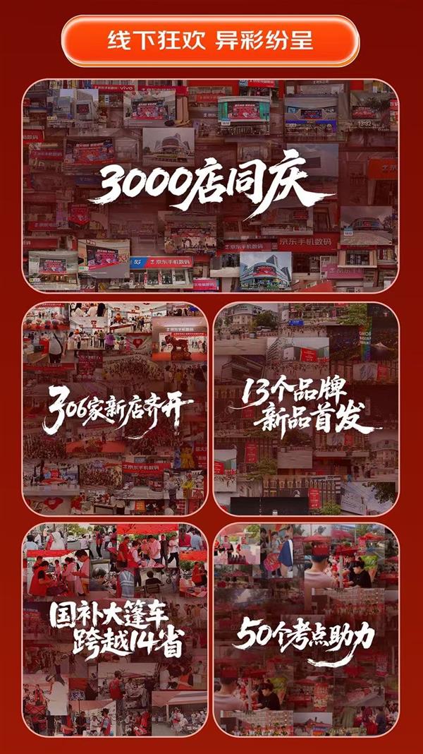 线下生态同步迸发活力,并迎来里程碑时刻——京东3C数码门店“燎原行动”实现突破3000家门店的战略目标。京东618期间全国超3000家京东之家、京东手机数码专卖店、京东电脑数码专卖店等3C数码门店联动狂欢,期间新开业306家门店加速服务网络覆盖。此外,京东3C数码门店通过“国补大篷车”巡游14省,为消费者面对面普及以旧换新政策,并联合13个品牌首发新品。立足高考节点,京东3C数码门店共打造50个“高考加油站”,为考生家庭送上贴心助力。