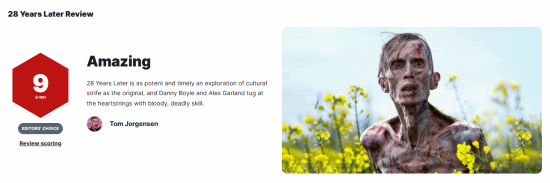 经典丧尸片续作《惊变28年》将于6月20日上映,IGN为本片给出了9分的评价,认为《惊变28年》对文明冲突的探讨犀利而应时,导演丹尼·博伊尔和编剧亚历克斯·加兰用“血淋淋”的致命技艺,精准撩拨着观众的心弦。