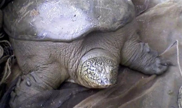 它是斑鳖,目前世界上可能只剩下两只,而且都是雄性