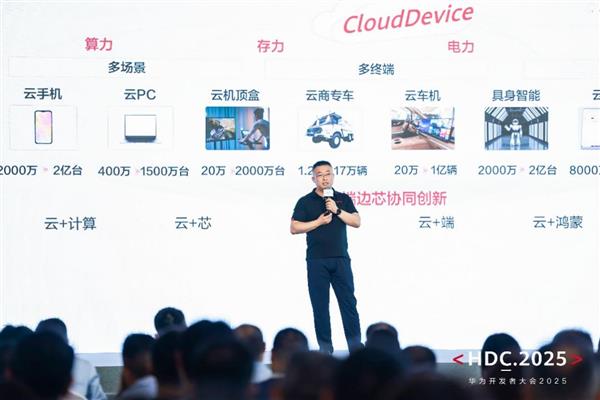 算力体系、AI技术与网络架构的深度融合,正成为驱动云终端技术革新与应用拓展的“三驾马车”,更大的创新空间正在被挖掘。在HDC2025“云启万物,智联未来”高峰论坛上,华为云aPaaS推出了新一代云终端产品—CloudDevice,依托独有的“云网端边芯”协同技术架构一云赋百业,推动云终端产业迈向新里程,加速万物上云进程与智能应用普及。