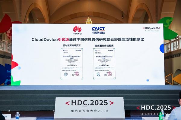 同时,信通院就CloudDevice的两项重点性能指标进行了评测:低时延云终端交互、高质量云终端画质,均获“引领级”证书。