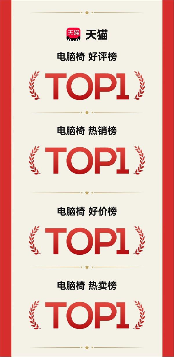 在天猫渠道,黑白调入选众多潮流榜单,连续拿下电脑椅好评榜、电脑椅热销榜、电脑椅好价榜、电脑椅热卖榜四个榜单TOP1,实力引领行业市场。