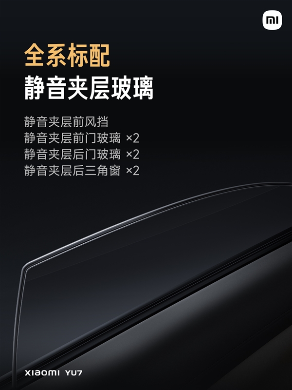 电脑知识网6月26日消息,在小米YU7上市发布会上,雷军着重介绍了该车的静谧性,其表示,静谧性是豪华感不可或缺的一部分,小米YU7#全系标配静音夹层玻璃,甚至包括双后三角窗。