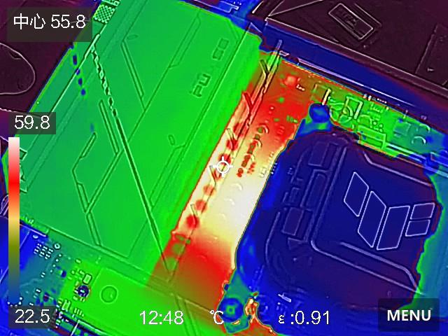 接着同时在25℃的室内,将锐龙7 9700X连续考机10分钟之后,蓝宝石PULSE脉动B850MP WIFI供电部分的温度还不到60℃,处理器也没出现降频、功耗下降的情况,表现非常稳定。