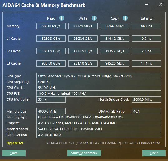 为了更好地考查蓝宝石PULSE脉动B850MP WIFI的综合性能,在实测环节我们搭配AMD锐龙 7 9700X处理器和蓝宝石NiTRO+氮动RX 9070 XT 16G D6 OC进行测试,考查主板在各方面的性能表现。