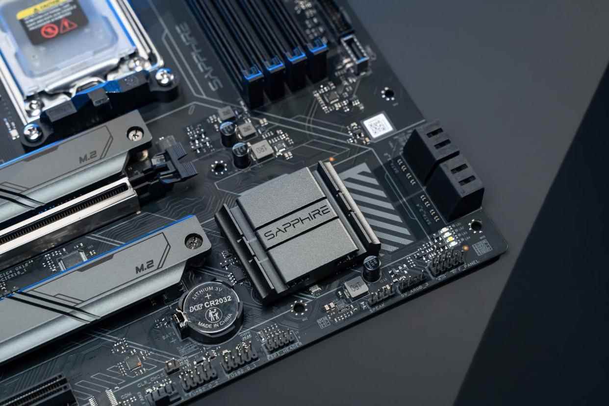 供电方面,蓝宝石PULSE脉动B850MP WIFI采用7+2+1相供电方案,搭配的是单8pin供电接口。考虑到锐龙9000系列的能耗比非常出色,锐龙5 9600X和锐龙7 9700X这样的中高端产品TDP都不过65W,主板的供电配置对于中端用户来说是完全够用的。在供电模块上覆盖的是加厚铝制脉动散热片,具备极强的持续散热能力,有助于确保主板在高负荷运行中的稳定。