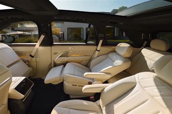 该车将配备后排可翻折娱乐屏、手套箱多媒体/空调控制屏、二排零重力座椅、分体式天窗、二排小桌板等,从安全带的位置看,二排零重力座椅大概率只支持驻车状态使用。