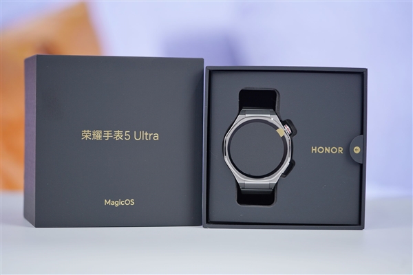 荣耀手表5 Ultra采用蓝宝石玻璃抗刮表镜,配合航空级钛合金机身,单机重量仅约51.8克,强韧耐用的同时佩戴舒适轻便,产品还是行业首款获得瑞士SGS综合可靠性五量认证的智能手表。