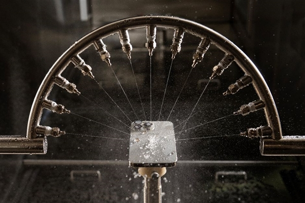 具体项目:包括长达100小时的盐暴露测试、高强度光照暴露,以及用亚利桑那沙漠的沙尘来分析细沙颗粒进入iPhone扬声器或充电口的情况;针对AirPods,还会进行人造汗水和耳垢的测试,且这些测试会依据苹果获取的设备使用数据进一步调整,以契合不断变化的环境。