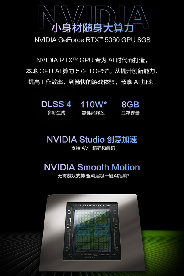 作为高性能轻薄本,华硕天选Air 2025搭载110W高性能释放的RTX 5060笔记本电脑GPU,支持NVIDIA Studio,并内置有一组全新的NVIDIA编解码器,生产力创作、视频剪辑皆能轻松胜任。另有DLSS 4全新特性加持,高画质畅玩3A大作亦游刃有余。